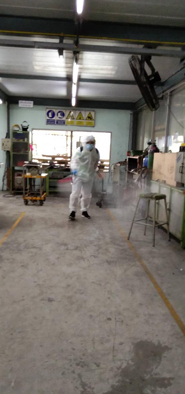 ทีมงาน.ฝ่ายปฏิบัติการ ดำเนินการส่งเจ้าหน้าที่ ทรมพ่นยาฆ่าเชื้อ ( COVID - 19 ) ที่ บริษัท เพาว์เวอร์ ยูต้า กรุ๊ป จำกัด ตามความประสงค์ร้องขอมา