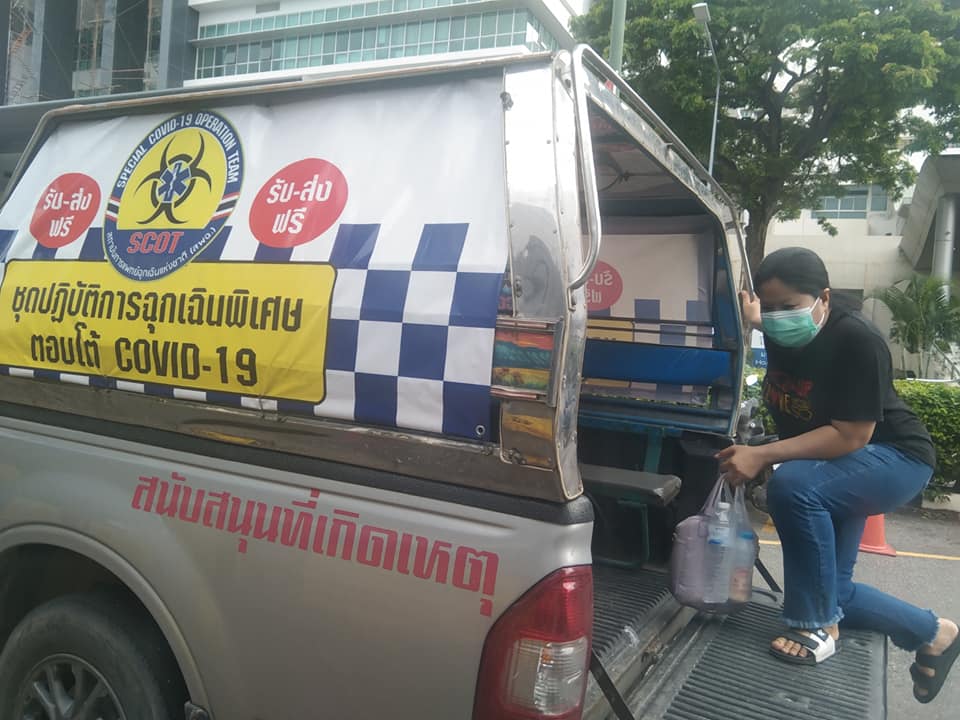 เวลา 16.07 น. บริการรับผู้ป่วยกลุ่มเสี่ยง ส่งตรวจเมื้อเช้า รับจากโรงพยาบาลสมเด็จ นำส่งกลับบ้านที่ เขาน้อยซอย.6 ศรีราชา