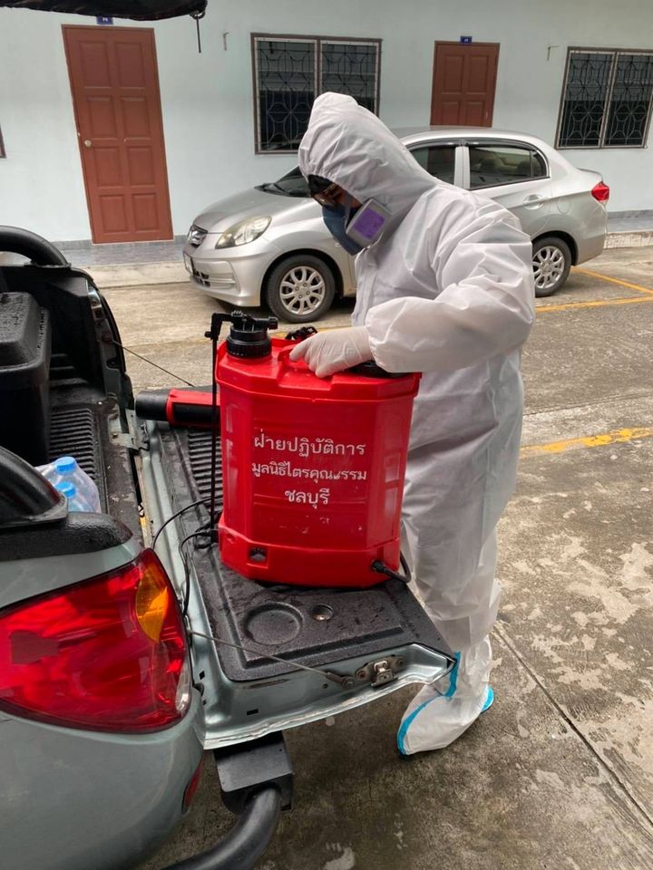 ฝ่ายปฏิบัติการ ( ตอบ . โต้ COVID - 19 ) มูลนิธิไตรคุณธรรม ( ซำเต็กไท้ ) ชลบุรี