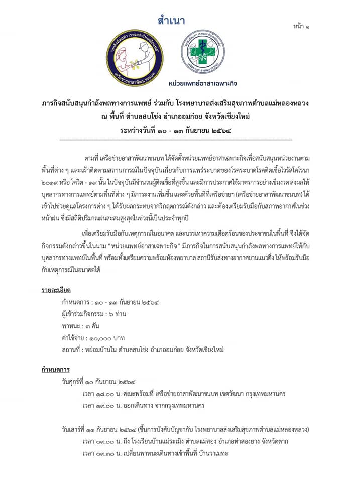 ฝ่ายปฏิบัติการ ออกร่วมกับ ทีมหมอหน่วยตรวจและดูแล หมู่บ้าน บาเด หมู่บ้าน วาเมทะ บนดอย จ.เชียงใหม่