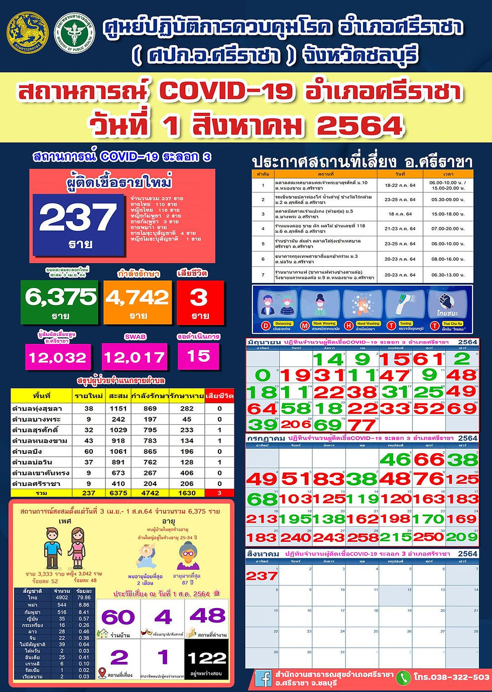ผู้ป่วย ใน อ.ศรีราชา วันที่ 1 สิงหาคม 2564ฝ่ายปฏิบัติการ1 ส.ค. 2564ยาว 1 นาทีสถานการณ์ COVID-19 อำเภอศรีราชาวันที่ 1 สิงหาคม 2564