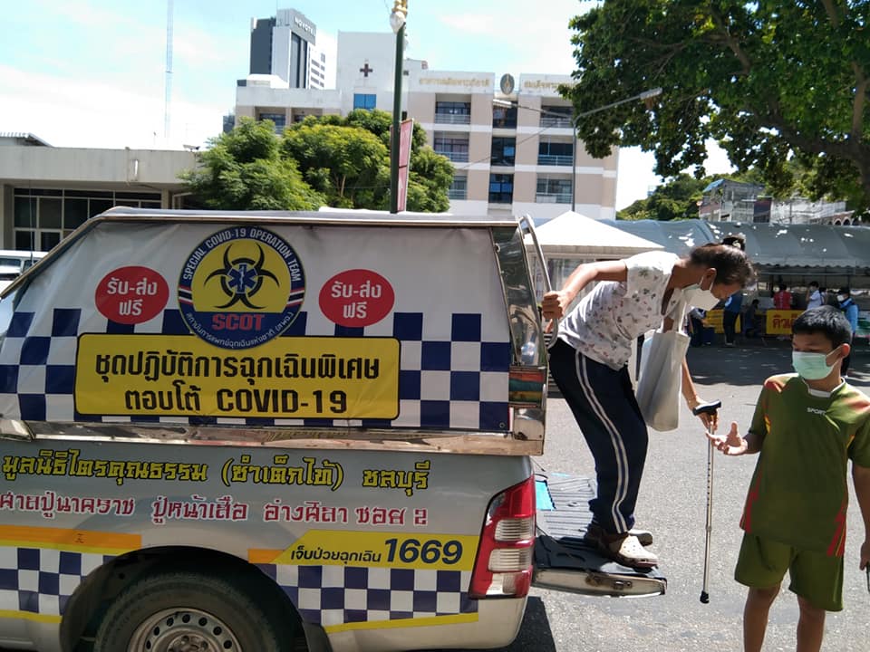 คันที่ 3 บริการรับจากหน้าวัดห้วยยายพรมเขต.ศรีราชา นำส่งรักษาตัวที่ รพ. สมเด็จ