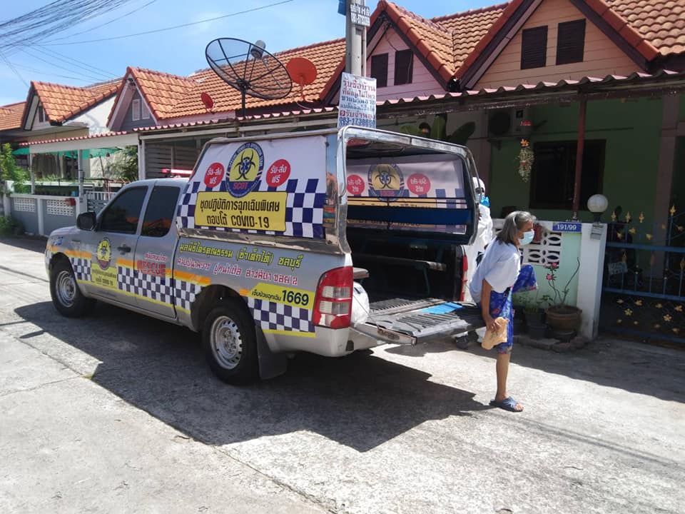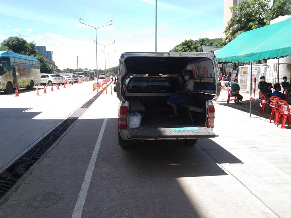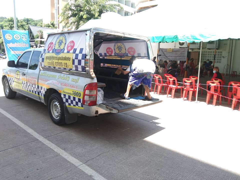 คันที่ 3 รับ ผู้ป่วยกลุ่มเสียง ติดเชื้อ จาก รพ.แหลมฉบัง ส่งกลับที่พัก บ่อวินเขาขยาย
