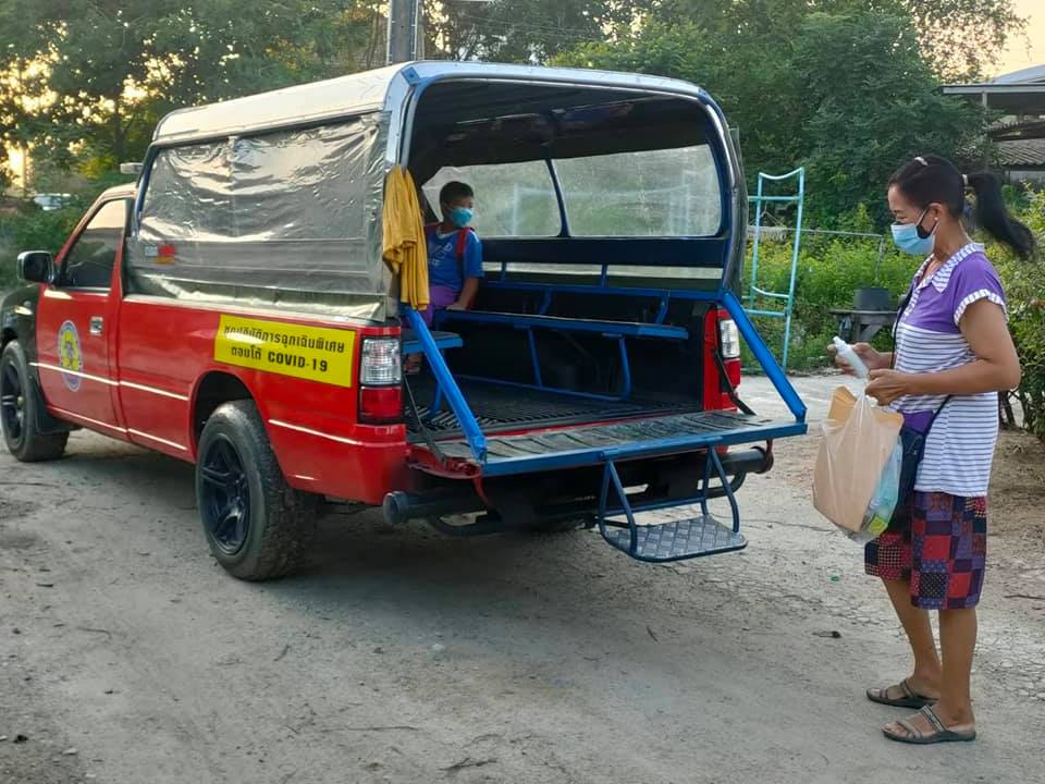 รถฝ่ายปฏิบัติการคันที่ 5ออกรับกลุ่มเสี่ยงติดเชื้อ (COVID-19)เขตมาบโป่ง นำส่งตรวจหาเชื้อ รพ.พานทอง
