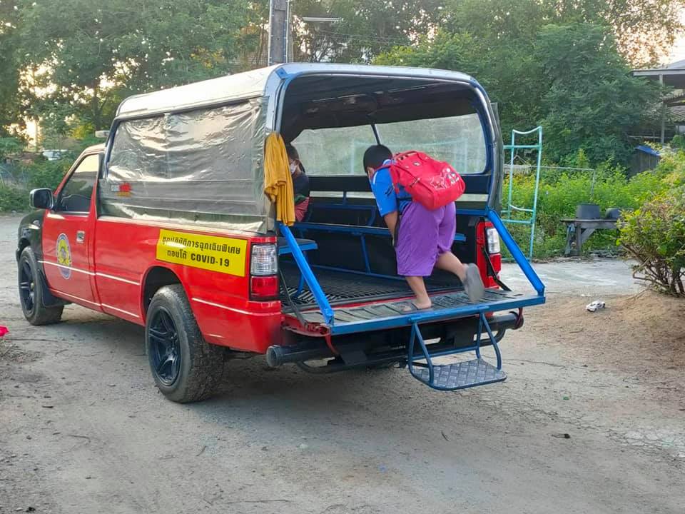 เวลา 06.37 น. ดำเนินการรับผู้ป่วยกลุ่มเสี่ยงติดเชื้อ ม.7 มาบโป่ง นำส่งตรวจหาเชื้อ รพ.พานทอง