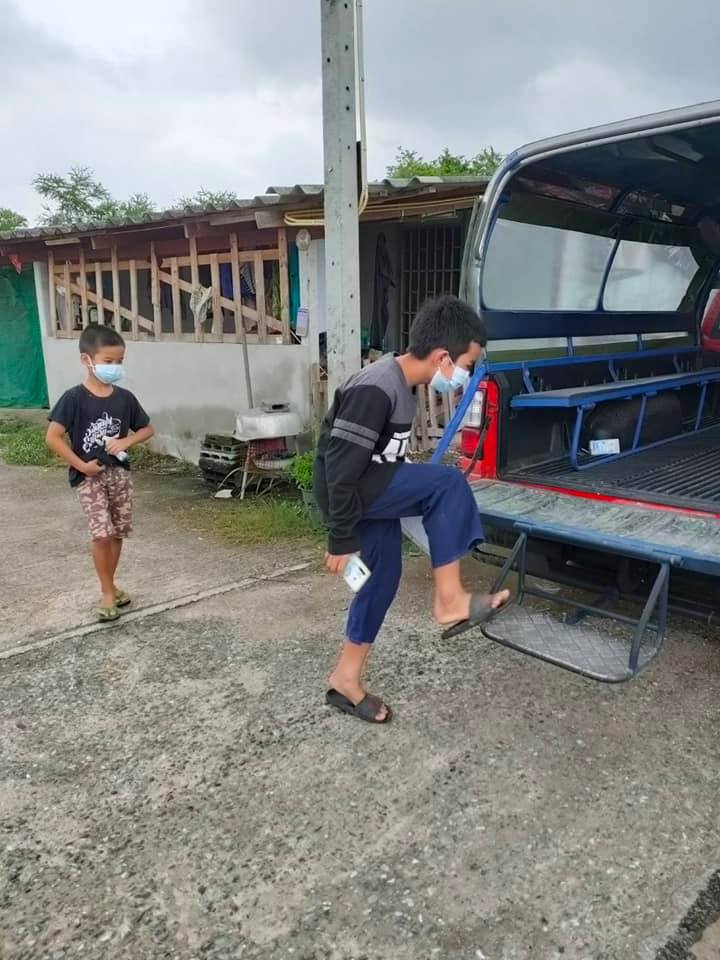 เวลา 11.16 น. บริการรับผู้ป่วยติดเชื้อ ต.เกาะลอย บริการนำส่ง รพ.พานทอง