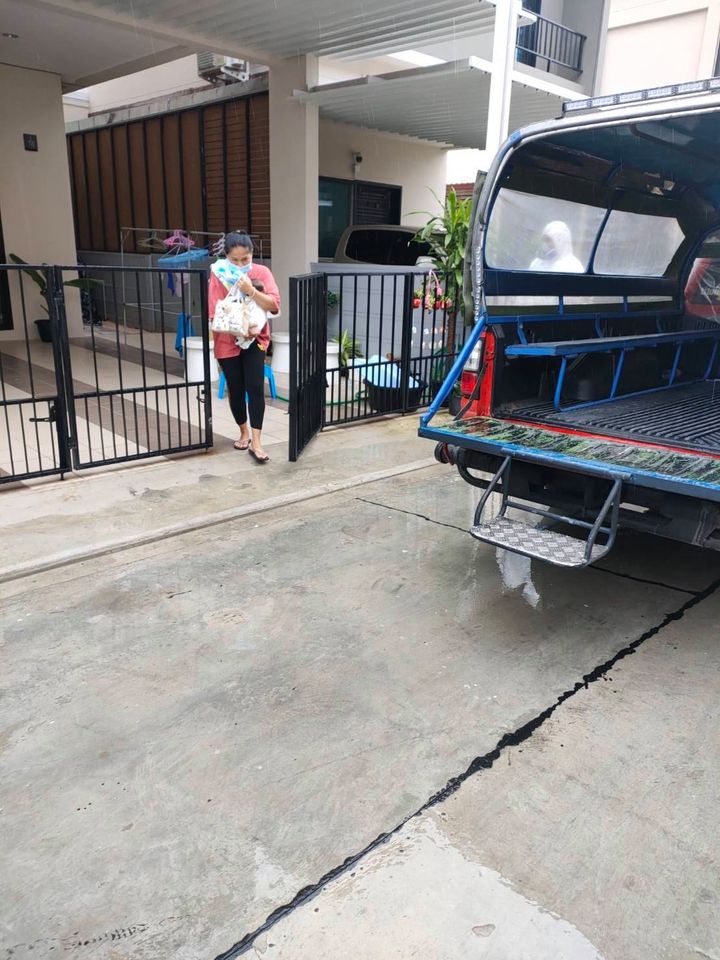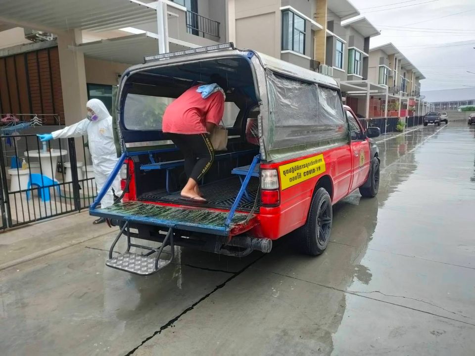 รถฝ่ายปฏิบัติการคันที่ 5 พร้อมเจ้าหน้าที่รับผู้ป่วยหมู่บ้านแสนรัก4 นำส่ง รพ.วิภารามอมตะ
