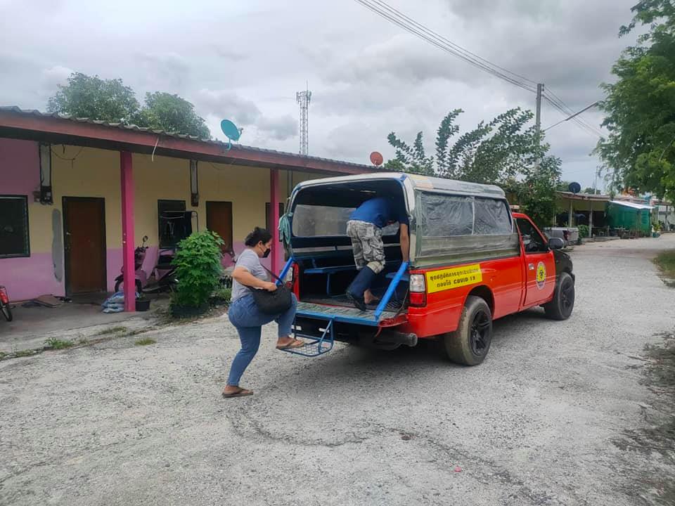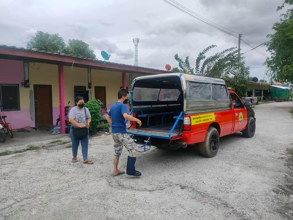 เวลา 12.47 น. ดำเนินการ รับผู้ป่วยกลุ่มเสี่ยงติดเชื้อ ( COVID - 19 ) ม.6 เขต.หนองตำลึง นำส่งตรวจ รพ.พานทอง